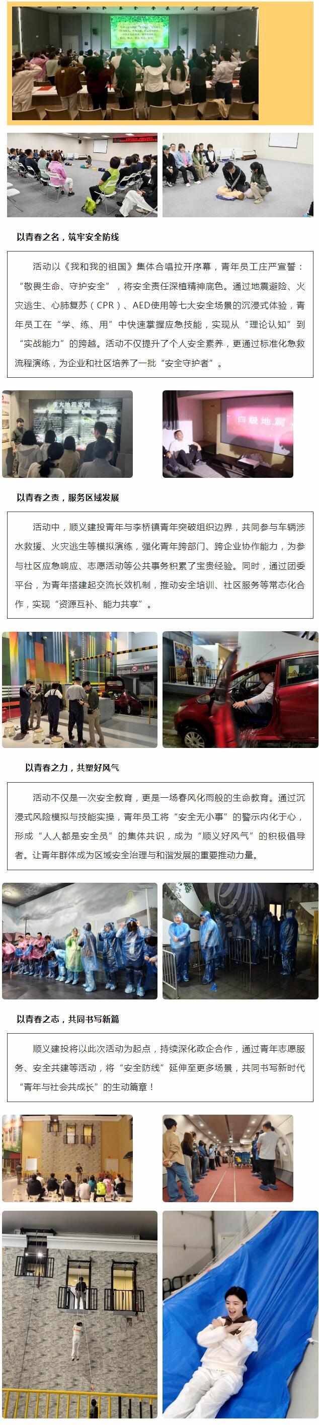 五四青年節(jié)到來(lái)之際,北京順義建設(shè)投資服務(wù)有限公司(簡(jiǎn)稱(chēng)“順義建投”)聯(lián)合李橋鎮(zhèn)政府,以“青年攜手安全行、共塑順義好風(fēng)氣”為主題,在北京公共安全體驗(yàn)館舉辦了一場(chǎng)別開(kāi)生面的沉浸式安全教育活動(dòng)。50余名青年員工通過(guò)“識(shí)險(xiǎn)避險(xiǎn)、自救互救”實(shí)戰(zhàn)演練,將五四精神轉(zhuǎn)化為守護(hù)生命的行動(dòng)力,為順義區(qū)安全防線建設(shè)注入青春動(dòng)能。