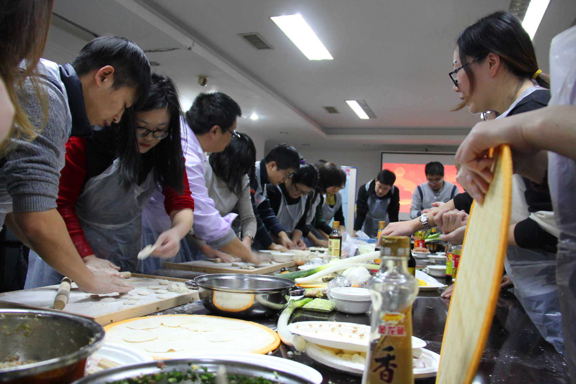 設(shè)計(jì)所工會(huì)在2月9日一早就為大家準(zhǔn)備好了包餃子的材料和用具。9點(diǎn)整,活動(dòng)正式開始。比賽隨機(jī)抽簽分為四隊(duì),大家各自分工,洗菜、拌餡,一起動(dòng)手,一邊包餃子一邊交流著不同地方的新年習(xí)俗。