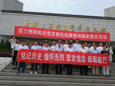 銘記歷史,緬懷先烈,堅(jiān)定信念,砥礪前行,北京順義建設(shè)投資服務(wù)公司機(jī)關(guān)黨支部開(kāi)展“迎七一”主題黨日活動(dòng)。在建黨96周年來(lái)臨之際,6月29日,順義建投27名黨員干部和入黨積極分子前往中國(guó)人民抗日戰(zhàn)爭(zhēng)紀(jì)念館和盧溝橋參觀學(xué)習(xí),重溫革命歷史,緬懷革命先烈。