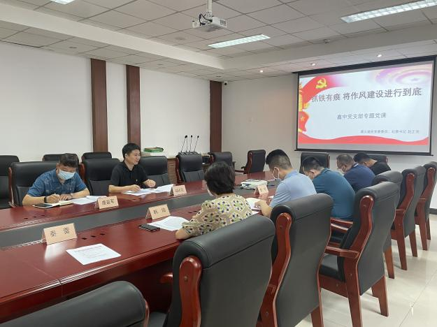為慶祝中國共產(chǎn)黨成立101周年,進一步推進黨員干部思想作風(fēng)建設(shè),7月27日上午,順義建投黨委委員、紀委書記趙正亮深入鑫中黨支部,以《抓鐵有痕 將作風(fēng)建設(shè)進行到底》為題,為全體黨員宣講專題黨課。會議由鑫中黨支部書記趙凱主持,全體黨員參加。