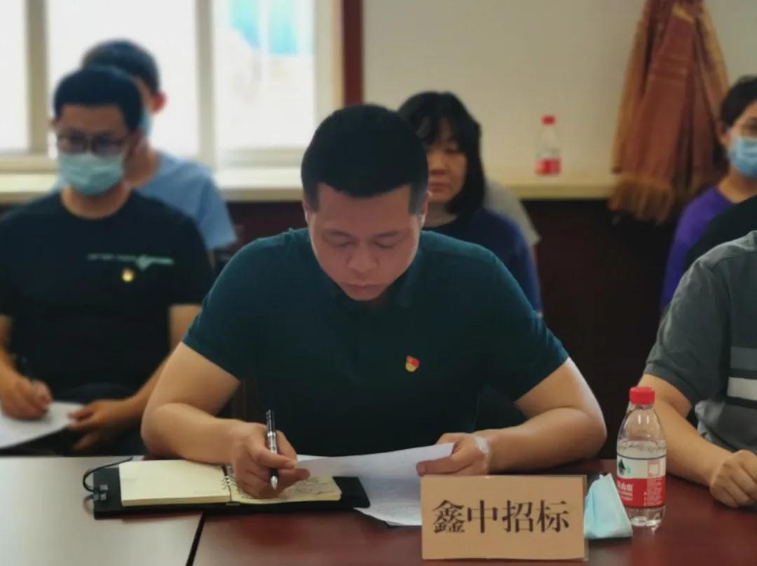 鑫新拍賣公司陳樂、鑫中招標(biāo)公司副經(jīng)理曹明分別向?qū)0喽讲榻M作“以案為鑒”專項(xiàng)整治工作匯報(bào)。鑫新拍賣公司黨支部書記、經(jīng)理宋勝春,鑫中招標(biāo)公司黨支部書記、經(jīng)理趙凱分別進(jìn)行了表態(tài)發(fā)言。