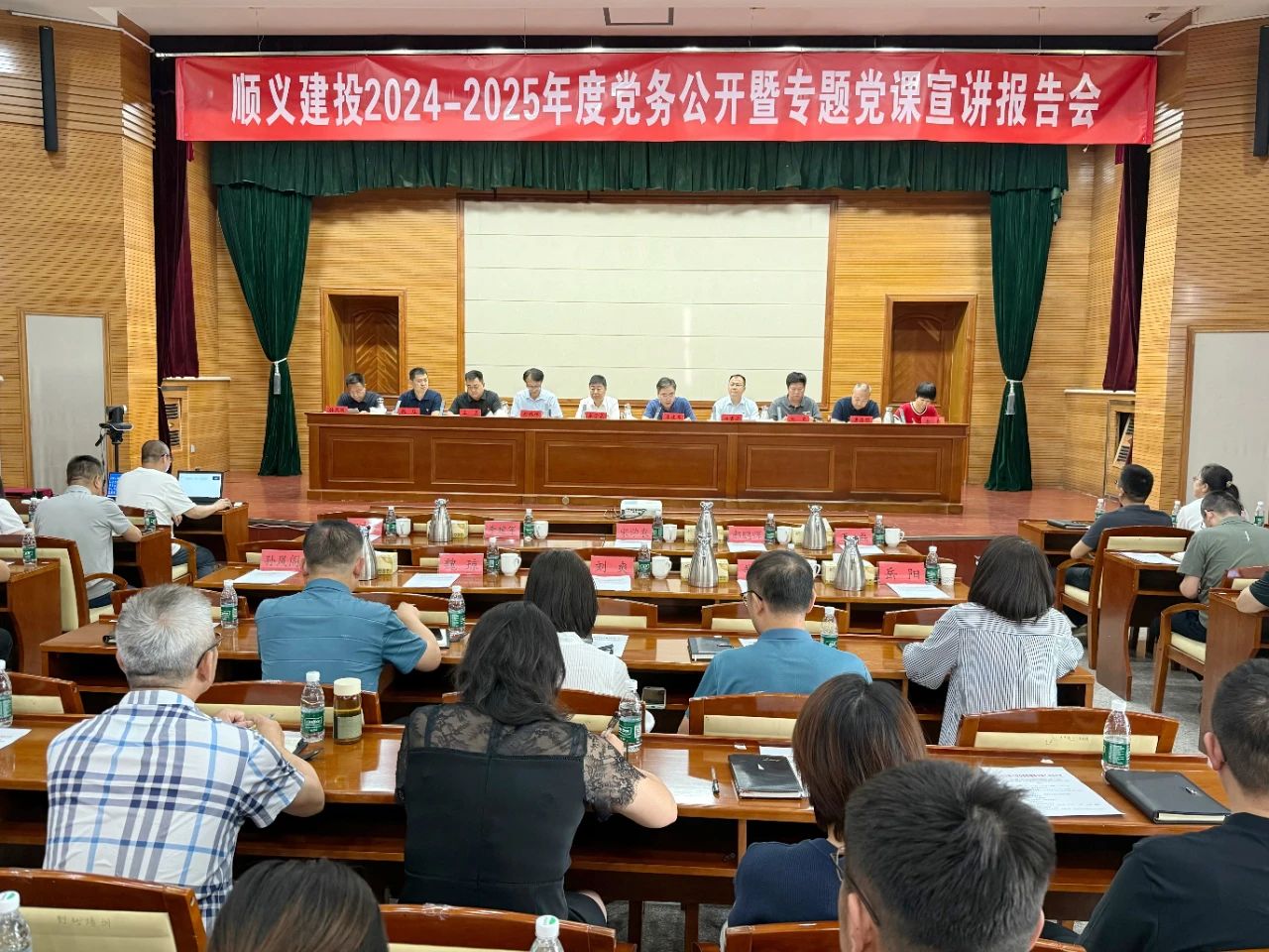 為隆重慶祝中國共產(chǎn)黨成立104周年,扎實(shí)推進(jìn)深入貫徹中央八項(xiàng)規(guī)定精神學(xué)習(xí)教育,6月30日,順義建設(shè)召開2024-2025年度黨務(wù)公開暨黨課宣講報(bào)告會(huì)。公司領(lǐng)導(dǎo)班子成員、中層干部、青鋒英才、黨員共計(jì)200余人參加。