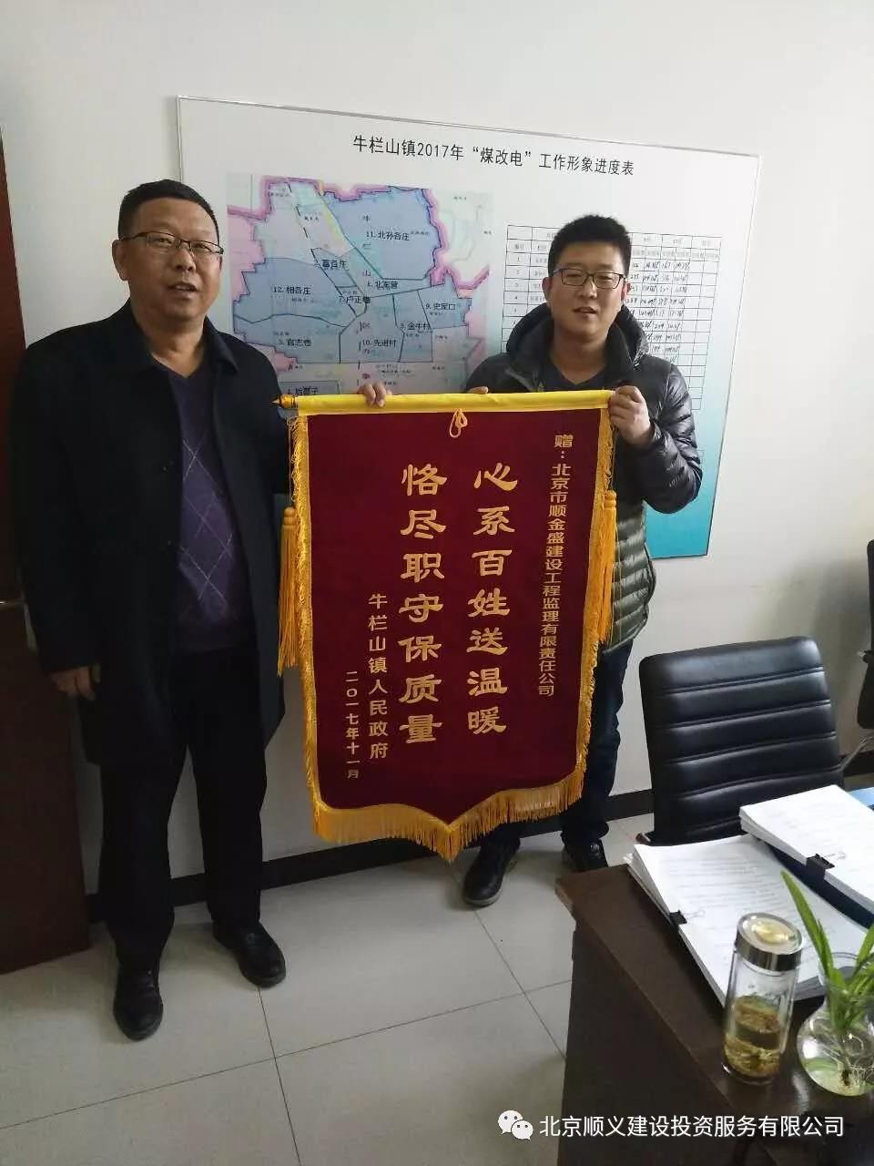 順義區(qū)2017年農(nóng)村地區(qū)“煤改電”工程實(shí)施以來(lái),北京市順金盛建設(shè)工程監(jiān)理有限責(zé)任公司已收到3面錦旗,分別來(lái)自順義區(qū)牛欄山鎮(zhèn)政府、佛山歐思丹熱能科技有限公司和南彩鎮(zhèn)前郝家疃村村民李躍來(lái)。