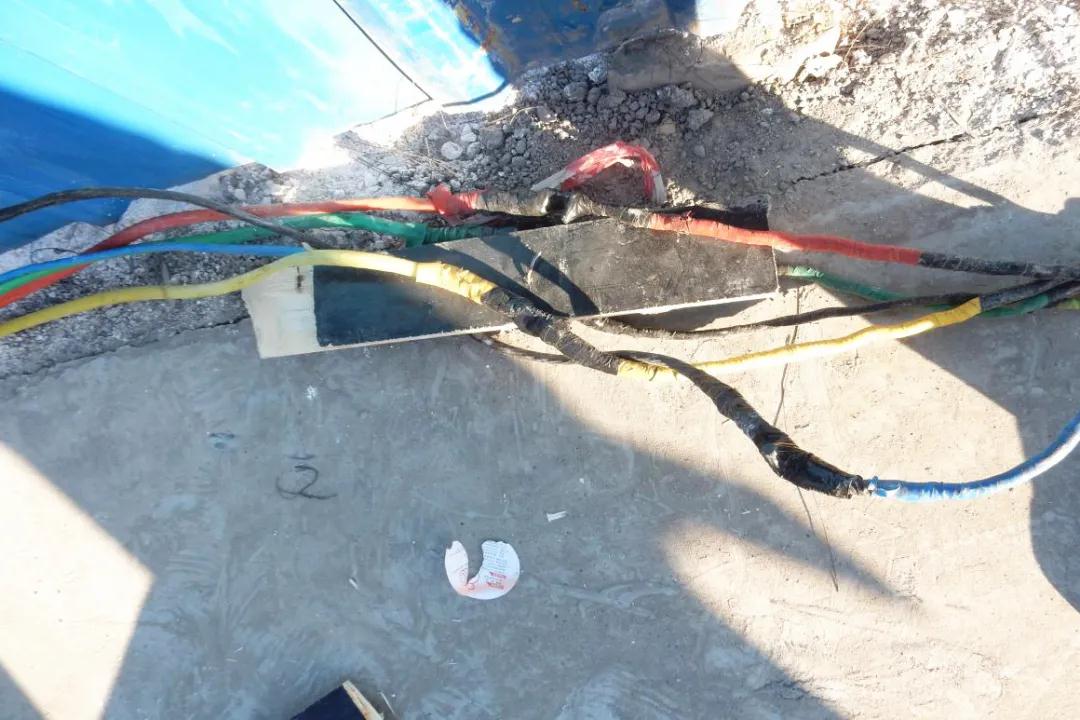 打樁機(jī)連接電纜鋪設(shè)不規(guī)范---穿越運(yùn)輸路面且未做鋪設(shè)保護(hù)