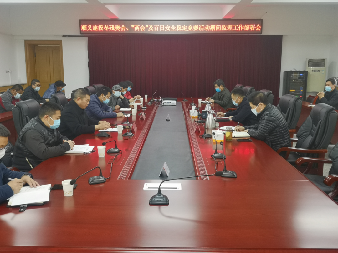 2022年3月4日,順義建投召開冬殘奧會、“兩會”及百日安全穩(wěn)定競賽活動期間監(jiān)理工作部署會,公司黨委副書記、經(jīng)理姚仕松;黨委委員、副經(jīng)理張海龍;公司質(zhì)量安全部全體人員及兩家監(jiān)理公司負責人、總監(jiān)代表參加此次會議。