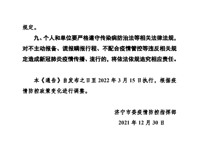 關于元旦春節(jié)期間跨市出行和入濟返濟人員 落實社區(qū)(村居)疫情防控措施的通告