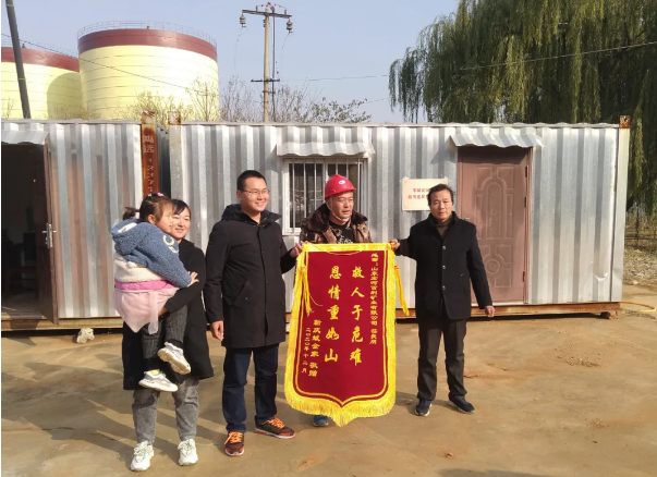 “救人于危難,恩情重于山”——12月6日一大早,山東宏河百利礦業(yè)有限公司院內(nèi)鞭炮聲陣陣,鄒城市嶧山鎮(zhèn)西鞏村靳慶斌全家為公司員工茌良朋送來(lái)了“救人于危難,恩情重于山”的錦旗。
