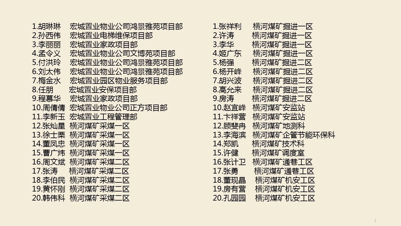 為展示集團(tuán)員工積極向上、愛崗敬業(yè)、無私奉獻(xiàn)的優(yōu)秀品質(zhì)和良好精神風(fēng)貌,加強(qiáng)員工隊(duì)伍建設(shè),激勵擔(dān)當(dāng)作為,凝聚干事力量,按照集團(tuán)黨委安排,在集團(tuán)開展“愛崗敬業(yè)最美宏河人”推薦評選及學(xué)習(xí)宣傳活動,自10月中旬文件下發(fā)之日開始,至截止日共收到推薦材料123份。集團(tuán)網(wǎng)管宣傳科重點(diǎn)根據(jù)典型性、真實(shí)性及材料充實(shí)性擇優(yōu)陸續(xù)推出各單位、部門推選的愛崗敬業(yè)最美宏河人事跡材料37份。 在發(fā)布的37份事跡材料中以他們?yōu)榇淼钠胀▎T工,涵蓋集團(tuán)發(fā)展業(yè)務(wù)中涉獵的不同行業(yè)、不同崗位,雖工作性質(zhì)不同,但都以在平凡崗位上默默工作,無私奉獻(xiàn),努力向上,持之以恒體現(xiàn)自己的價(jià)值為主。期間,微信公眾后臺收到很多很多留言,多是為大家自己心目中愛崗敬業(yè)的模范加油點(diǎn)贊! 從泗河之濱到孟子湖畔,從橫河煤礦到宏河控股,逢山開道,逾河架橋,知難而進(jìn),召之能來,來之能戰(zhàn),戰(zhàn)之能勝!在集團(tuán)公司發(fā)展過程中,有一大批員工隨工作需要遠(yuǎn)赴外地,有只要宏河發(fā)展建設(shè)有需要:“宏河在哪,家在哪”的他,有寧可聽些罵聲,也不能讓安全沒保障的安監(jiān)員,有十幾年如一日堅(jiān)守一個(gè)崗位的她,有傳承互助的好師傅,有忠于職守的有勤奮好學(xué)的他,有以青年之名扛時(shí)代擔(dān)當(dāng)踏實(shí)努力德才兼?zhèn)涞那嗄陚?,有妙手回春維修大拿,有任重道遠(yuǎn)巷修人,也有退伍不褪色平凡崗位展風(fēng)采的采煤一線工作者等等等等。為每一個(gè)努力加油的自己點(diǎn)贊,為努力向上的宏河人點(diǎn)贊! 因活動開展日期及篇幅有限沒有將所有事跡一一展示,文末將各單位、部室上報(bào)所有推薦材料人員名單附上。在此感恩感謝!